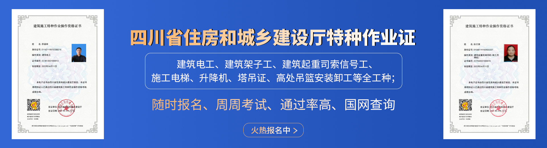 電工證,焊工證,登高架設(shè)證,高處安裝維護(hù)拆除證,電力電纜證,繼電保護(hù)證,電氣實驗證,防爆電器作業(yè)證,制冷工證,主要負(fù)責(zé)人證,安全管理人員證